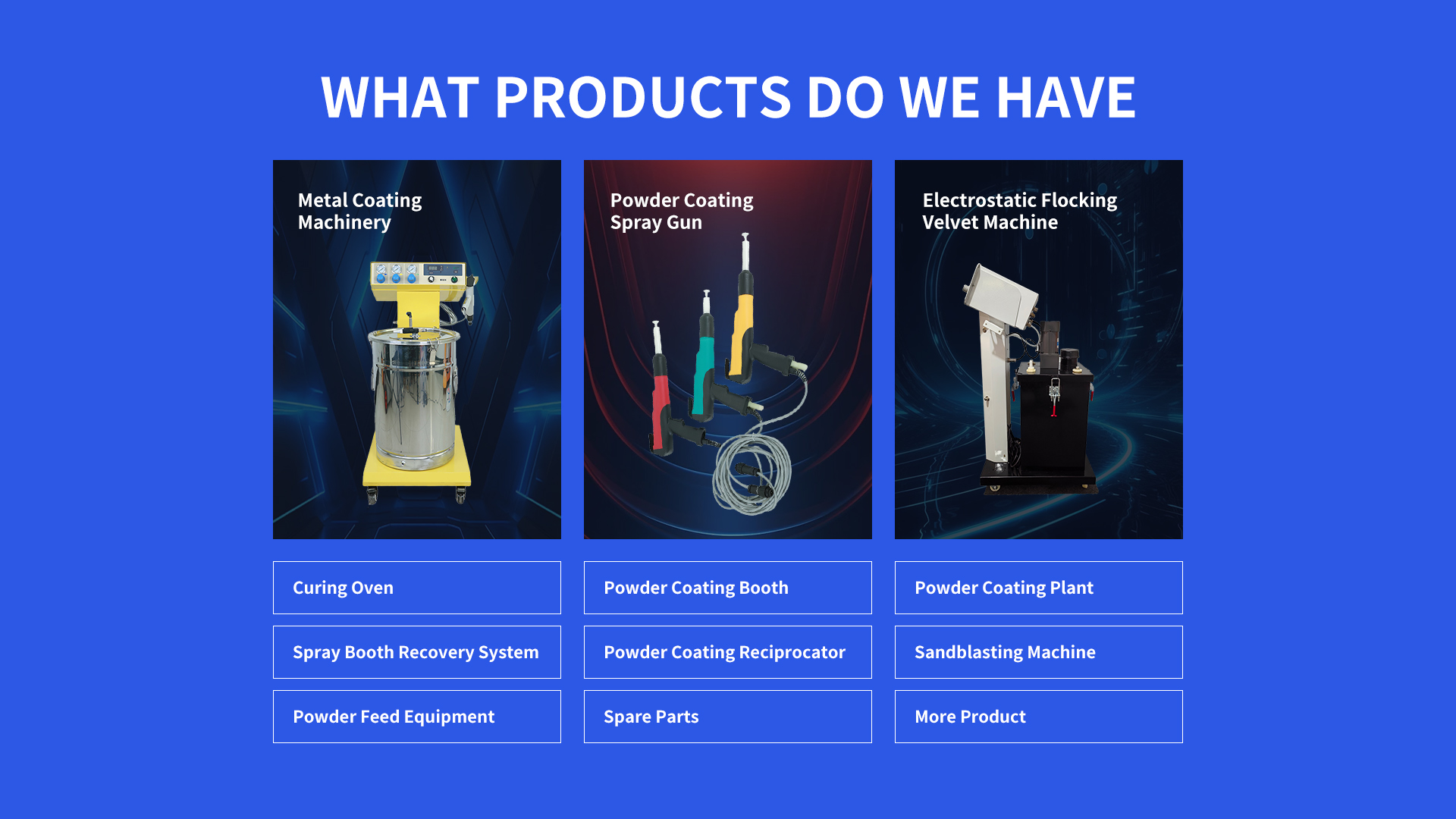 Small Powder Coating Equipmenttypically comprises a compact powder coating gun, a small powder feeder, and sometimes a basic curing device. The powder coating gun usually has a simple handle for easy grip, a powder flow control mechanism to regulate the amount of powder released, and a nozzle for spraying.